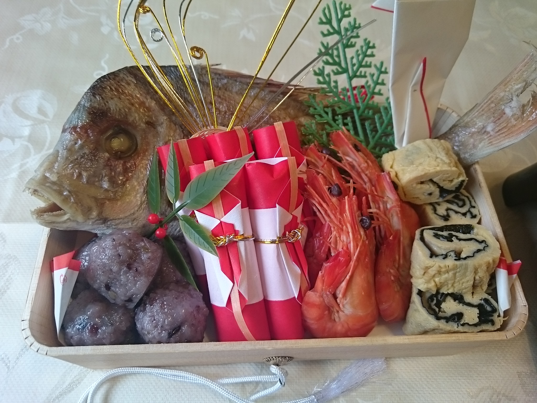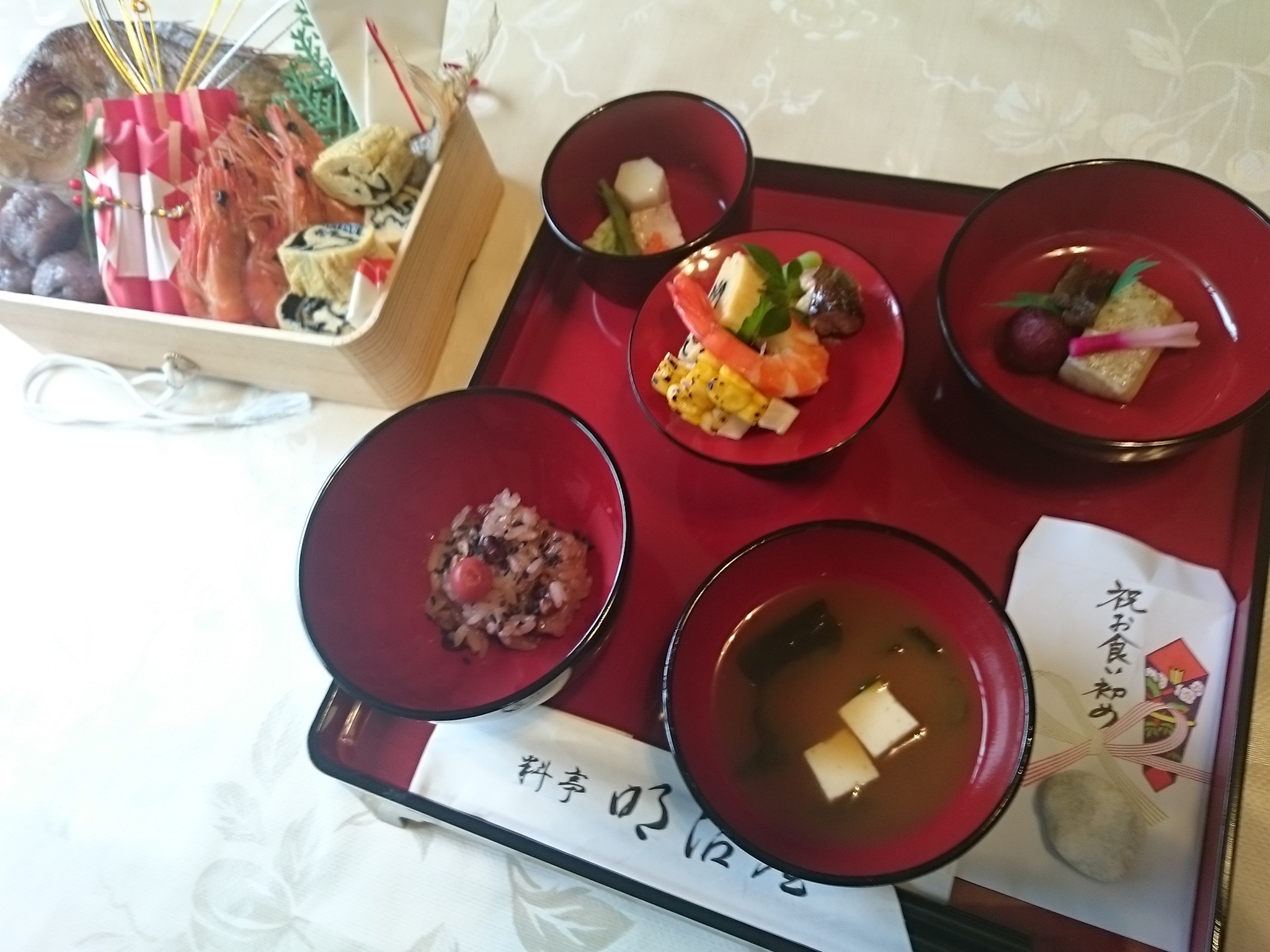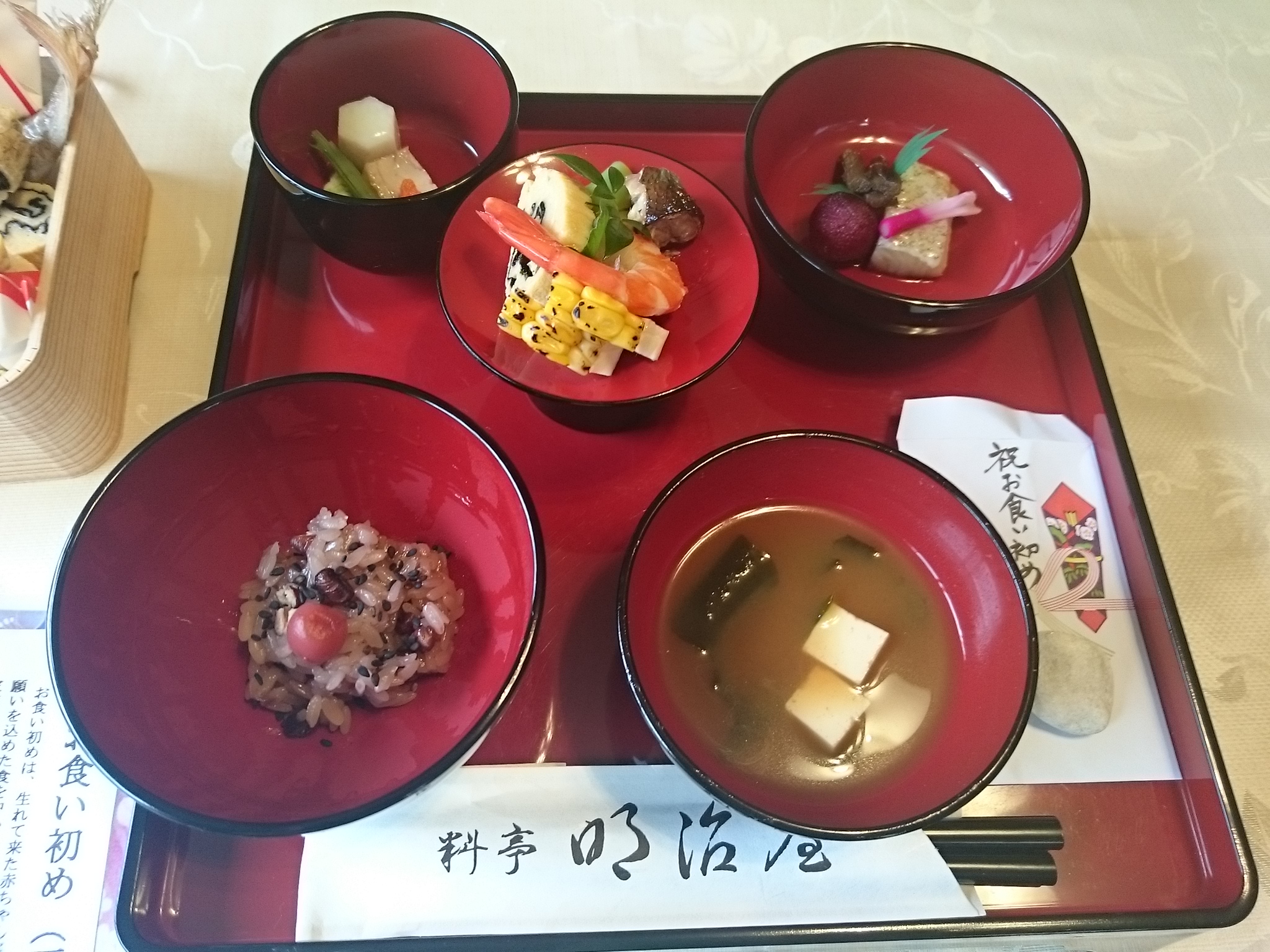 お祝いのお膳を明治屋から届けてもらい