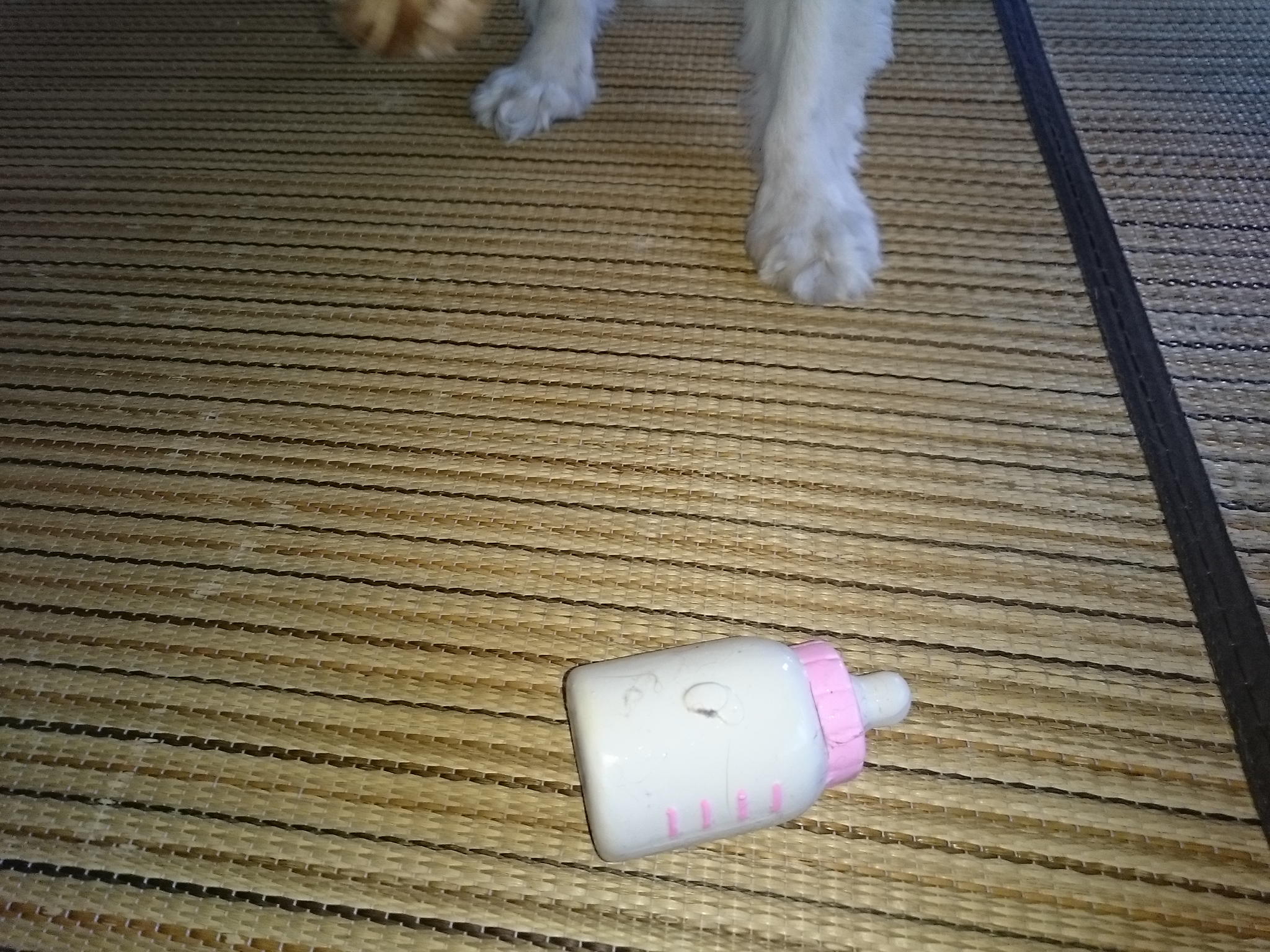 帰宅後 レディは大喜びでおもちゃで遊びました。