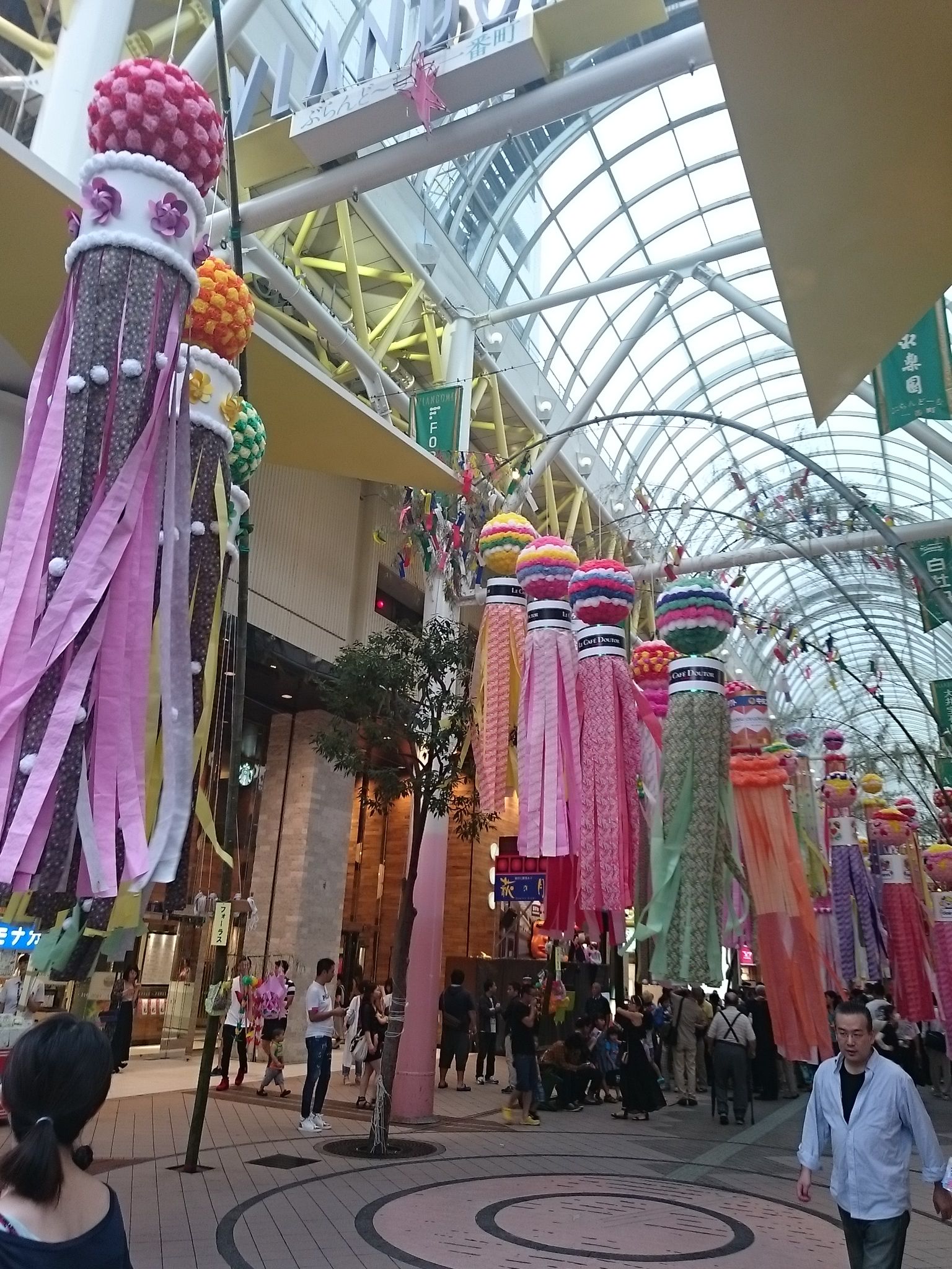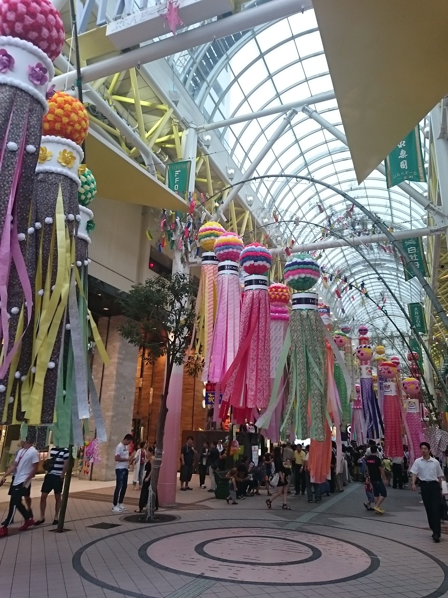 七夕飾りは、市内中心部のアーケードに飾られ
