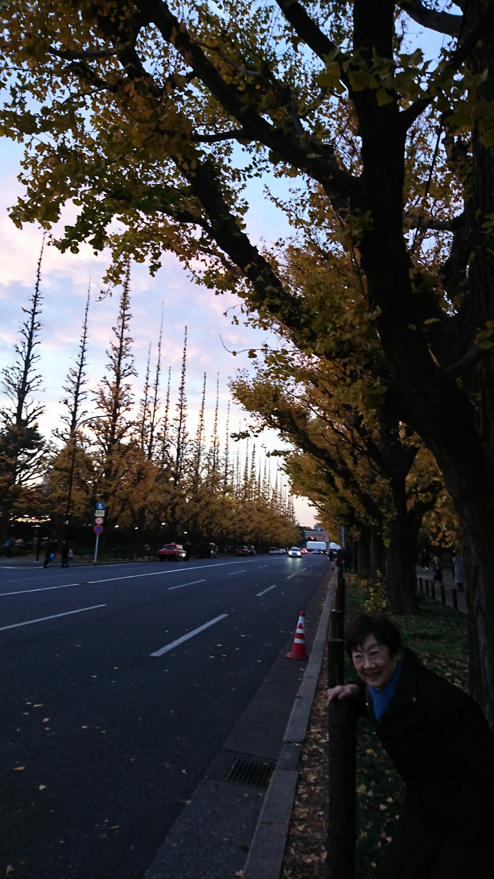 先生と3人で イチョウ並木を見に行きました。