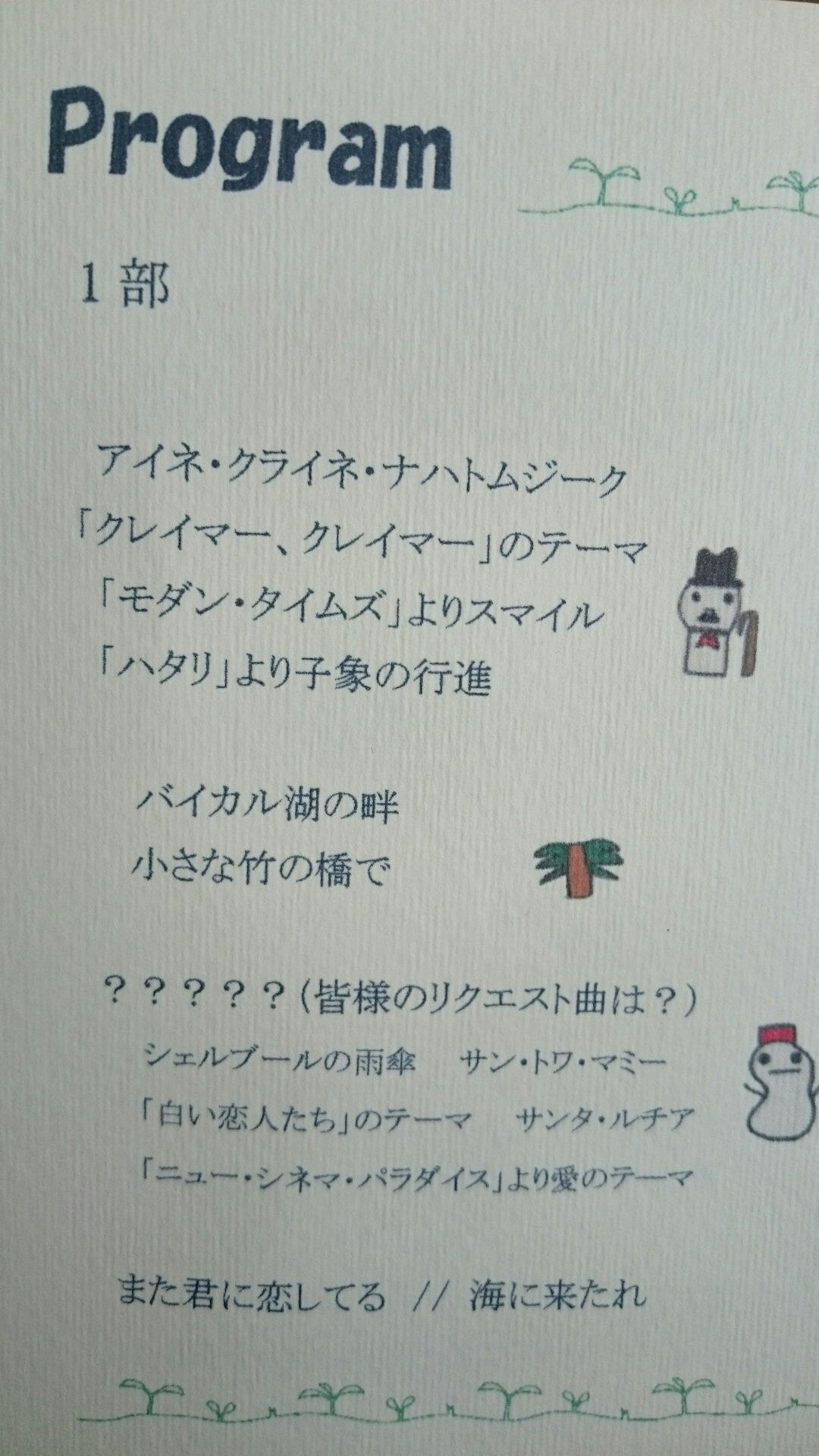 楽しい企画もあり「シェルブールの雨傘」と