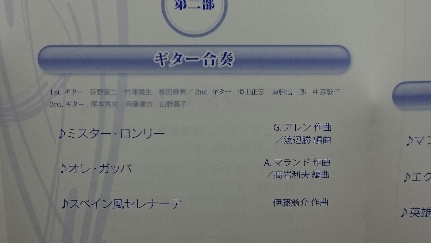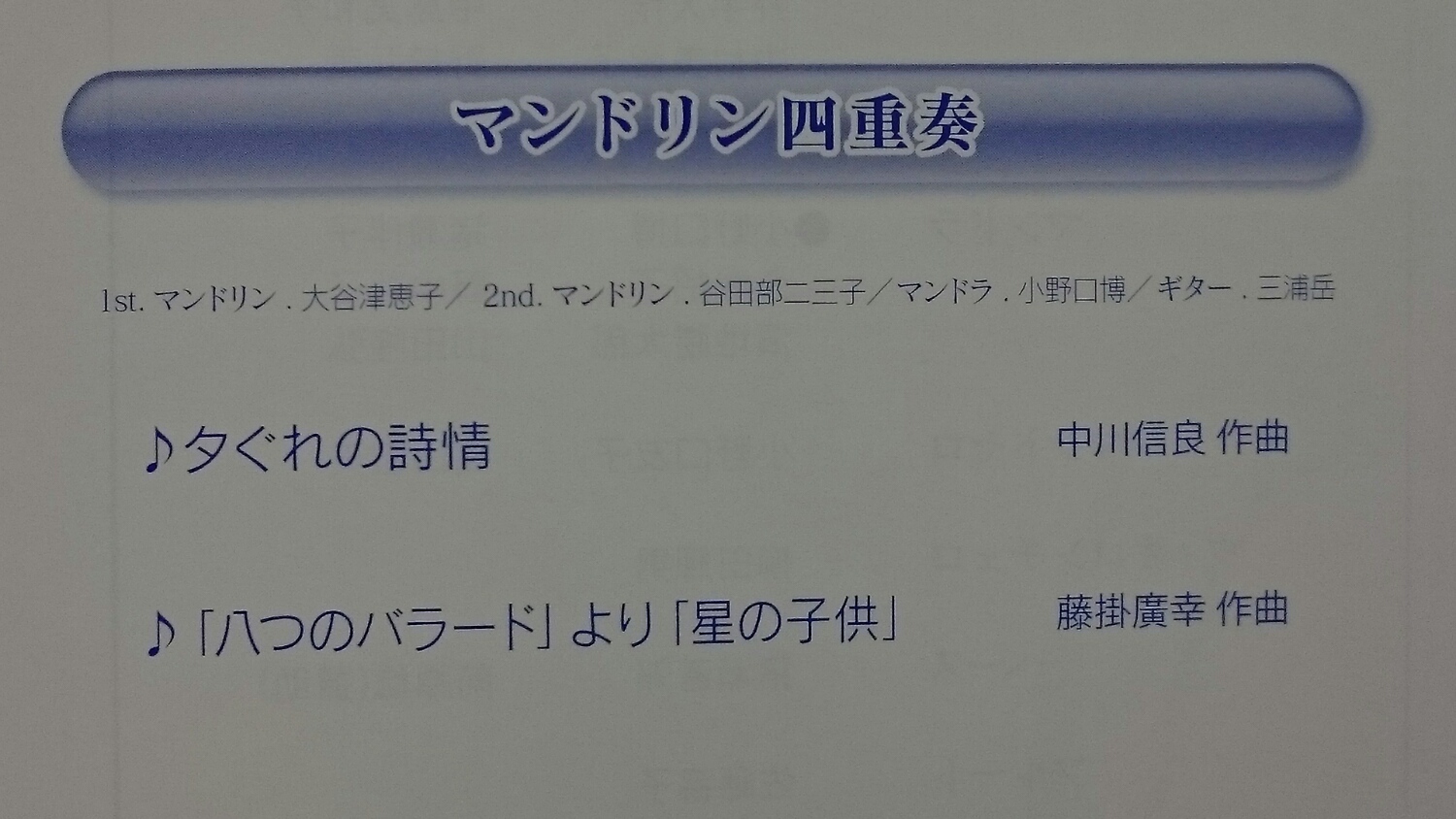 今回は、1部を除くと マンドリンオリジナル曲が多かったので