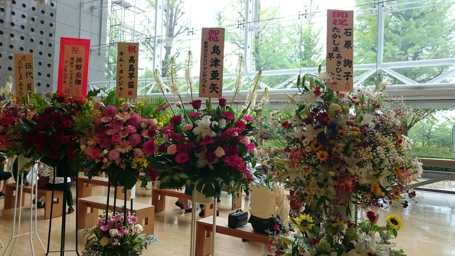 毎年ですが、ロビーには、華やかなお花の数々