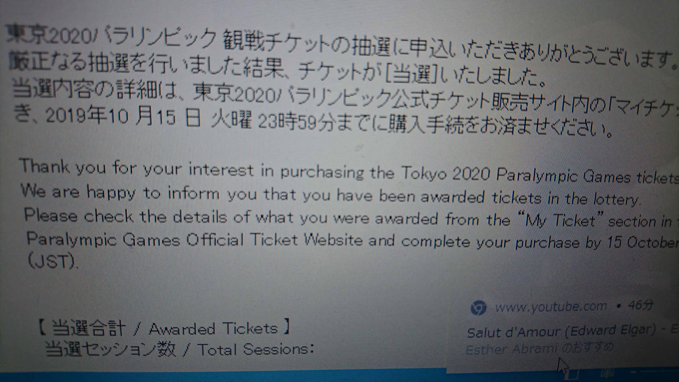 パラリンピック~当選\(^o^)/