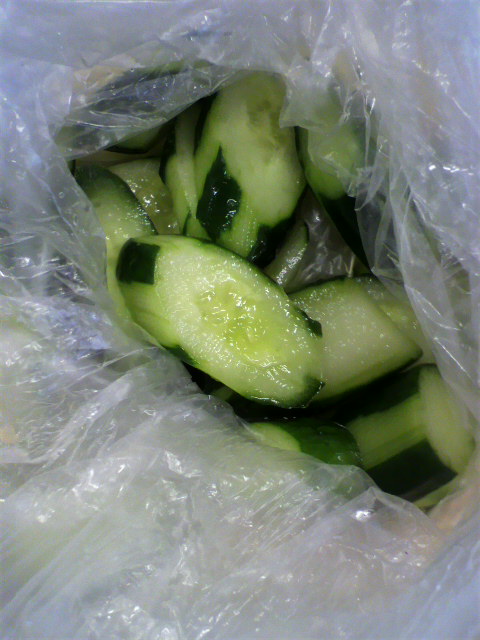 今朝の採れたてきゅうりの漬物