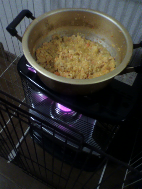 ちゃんと、ストーブの上に お鍋を置いて
