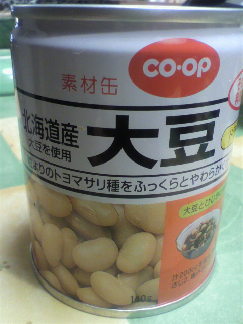 素材缶の大豆は、すでに ほっくり、柔らかくて