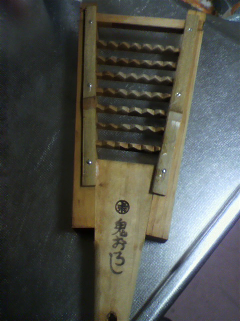 まず、「鬼おろし」という道具で、大根とにんじんをおろします。