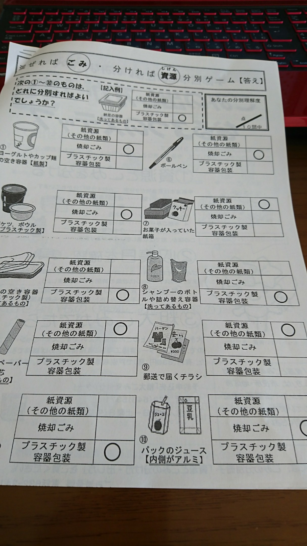 ゴミ分別のアンケートに答えてほしいと言われました。