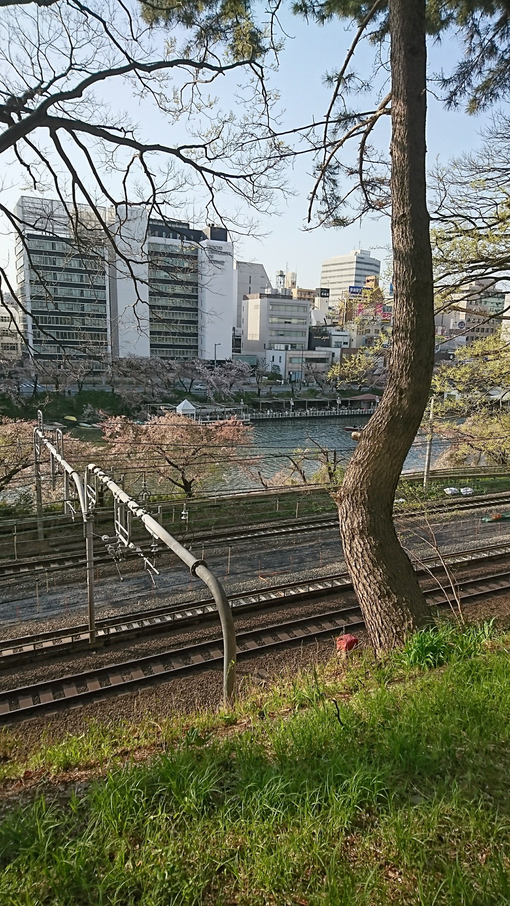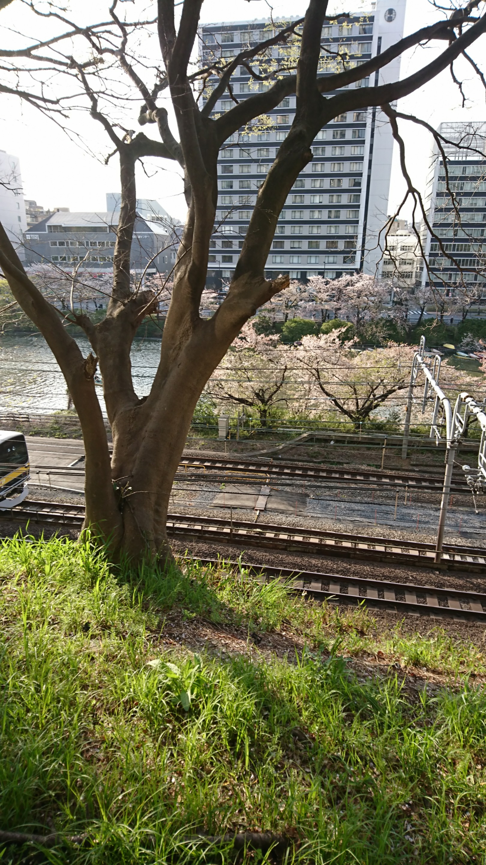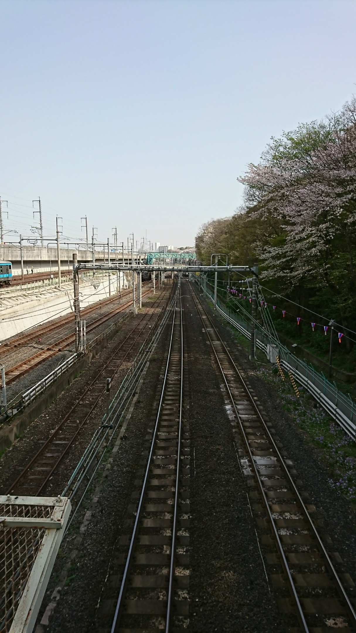 帰りは歩いて降りて 線路上から桜を見られました。