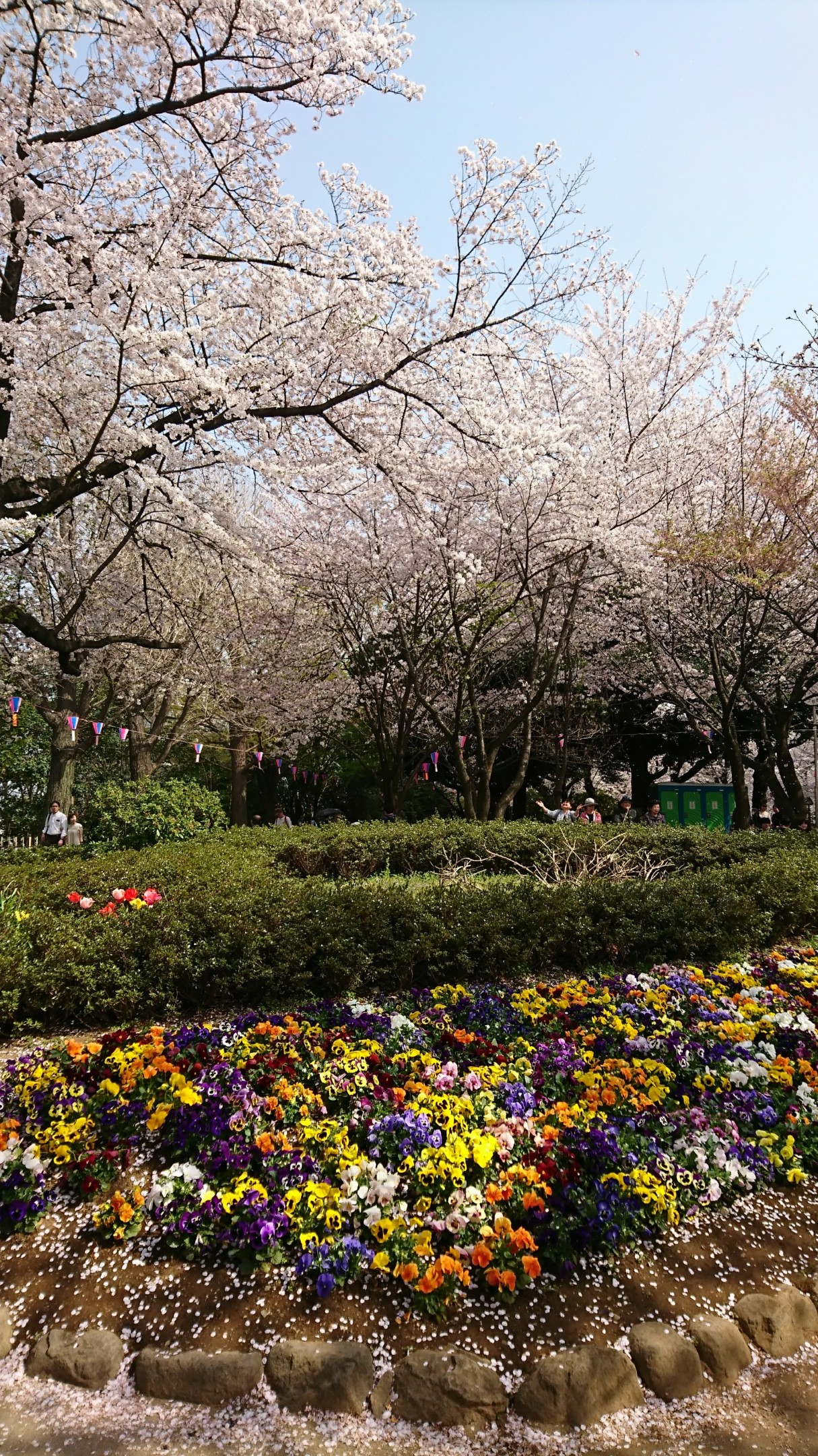 満開の桜の花吹雪の中でのお花見は 人出も多くて