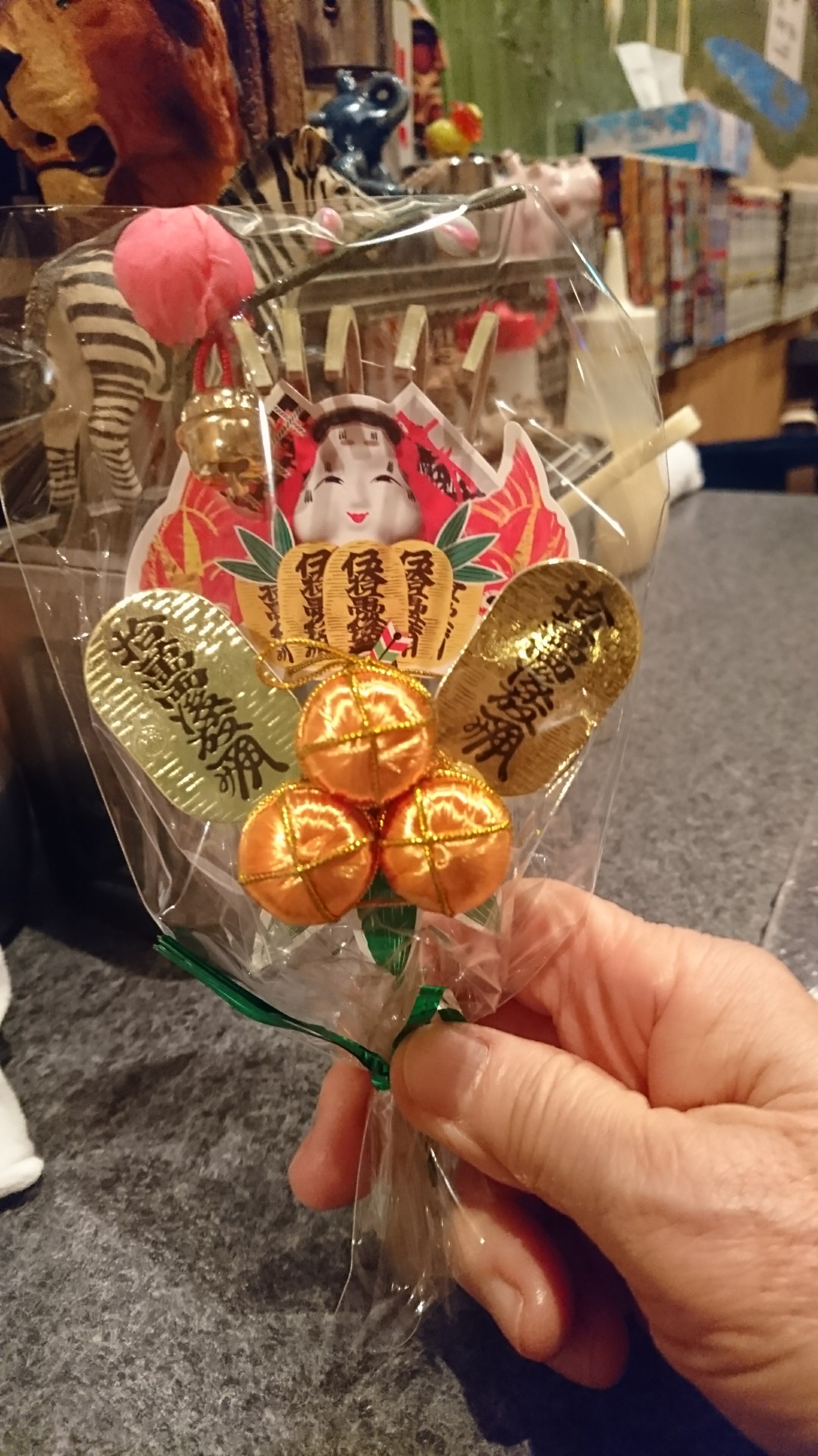先生が可愛らしい熊手を購入されました。