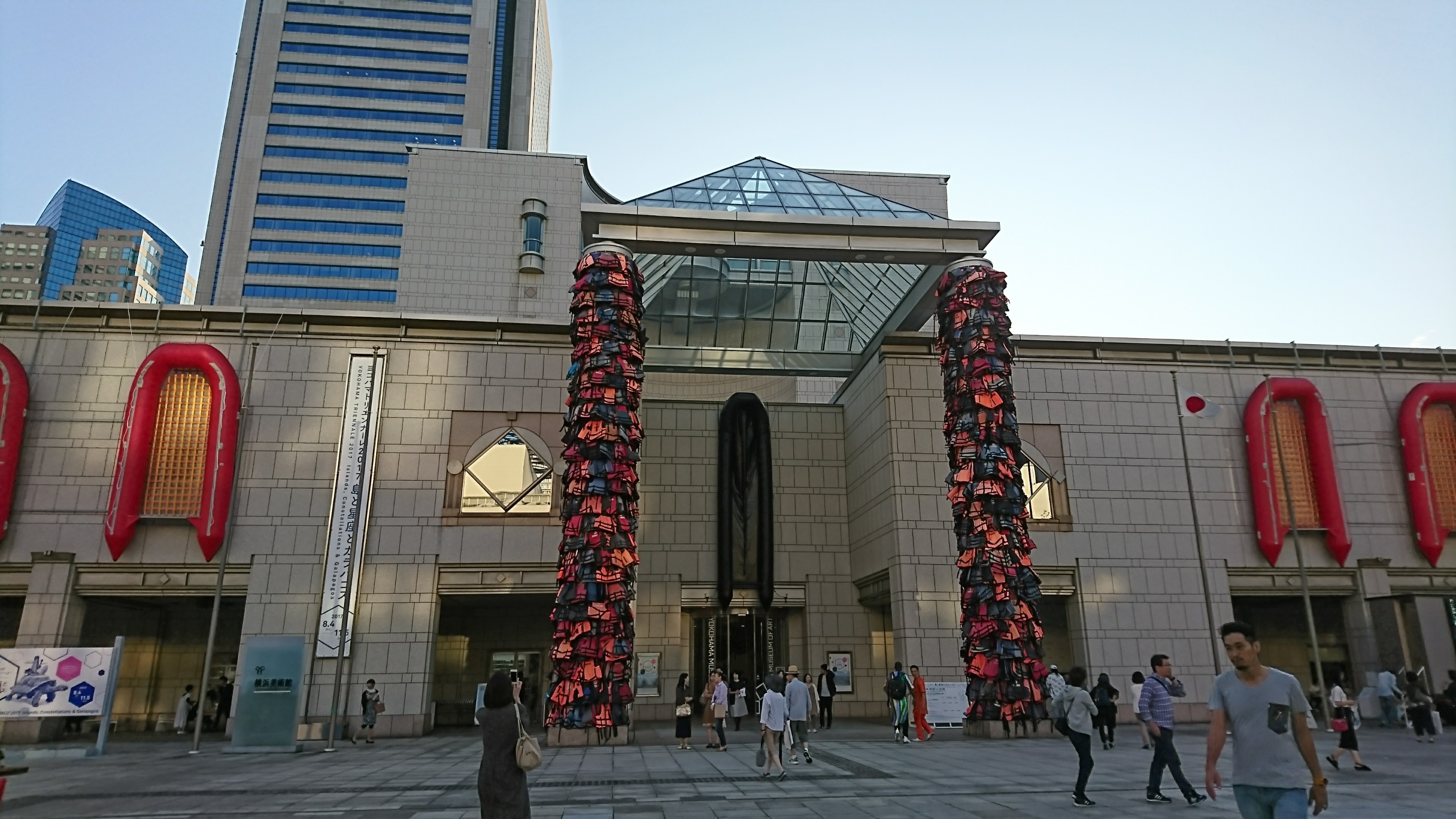 美術館の中央の色とりどりの柱にご注目ください。