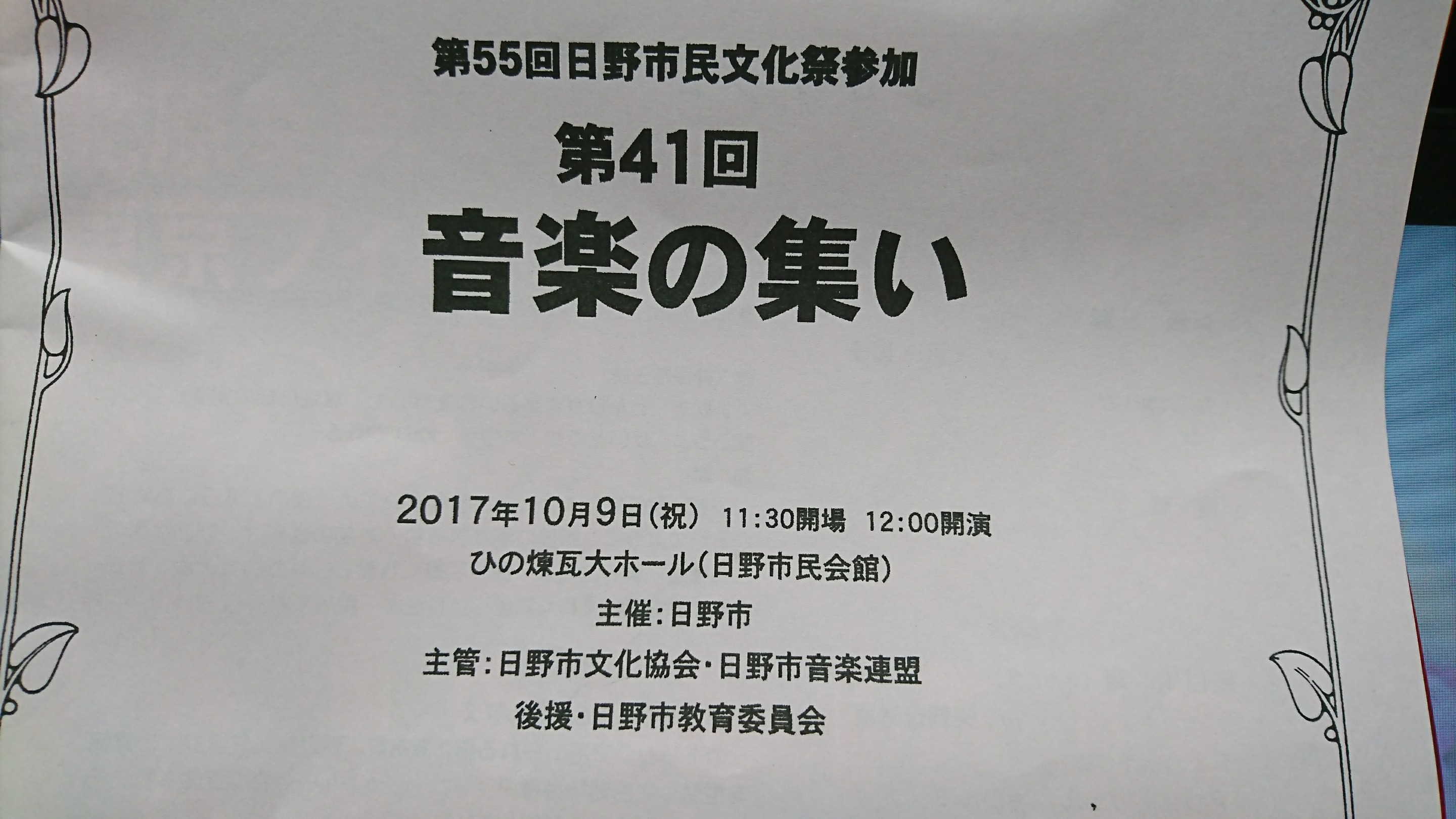 日野市民文化祭に歌でご出演のお知らせのお手紙を