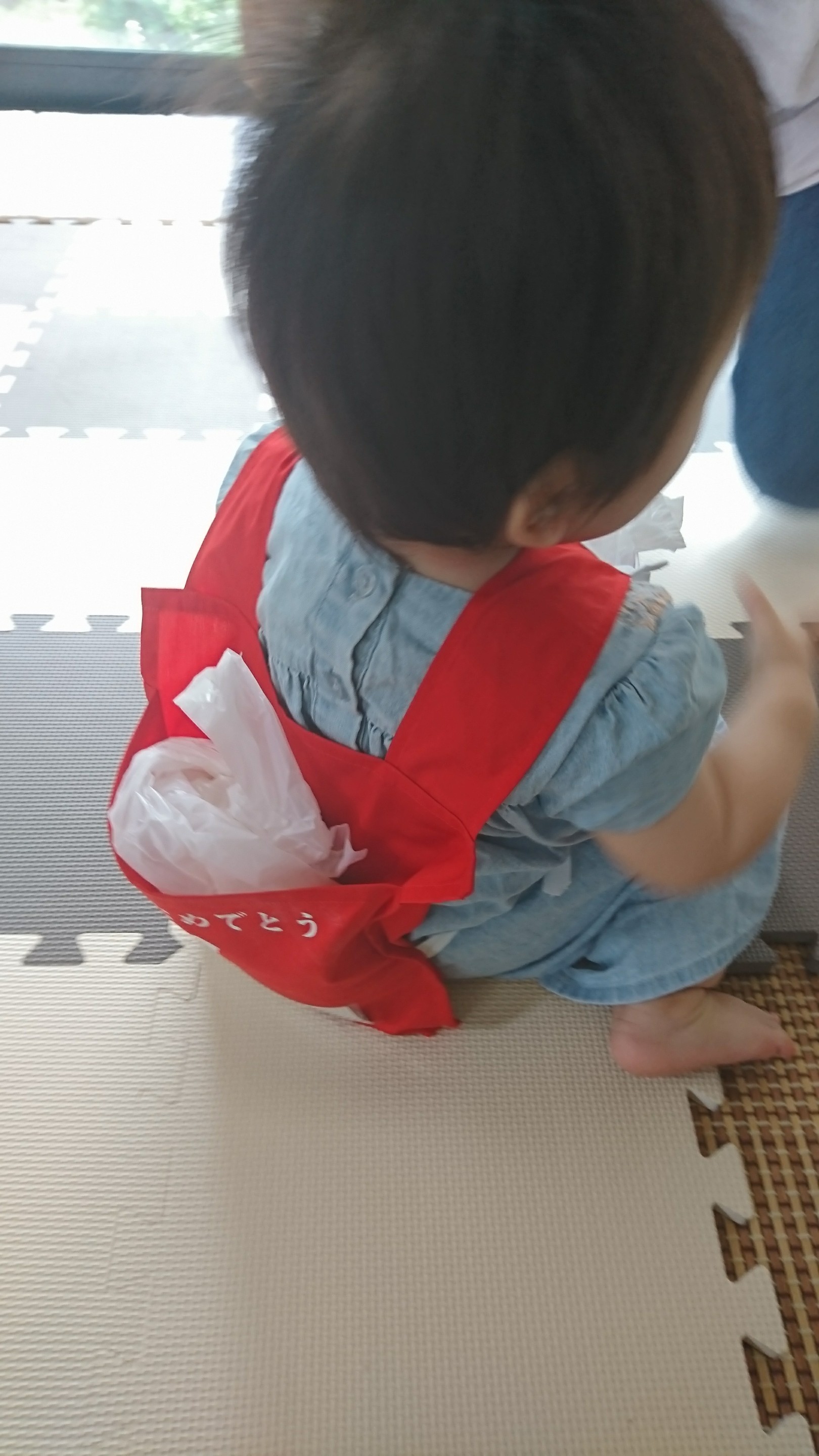 たくましい孫娘は 重いお餅を背負って数歩 歩けました。